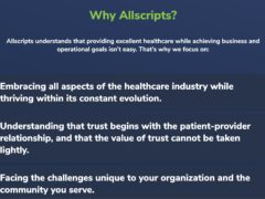 Allscripts is a South Burlington, VT-based software development specializing in patient-forward software for healthcare providers. Their software solutions are easily customized to each client’s needs and their team provides exceptional, ongoing support for those in their network. Allscripts takes privacy and security extremely seriously and has a thorough Privacy and Security Program available on their website.