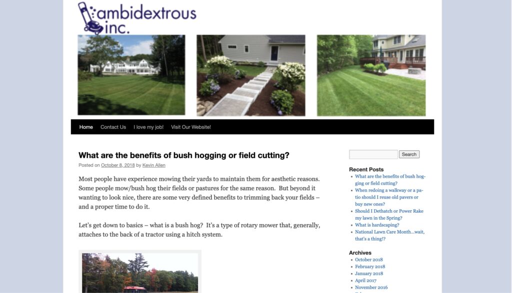 Ambidextrous Inc. Landscaping, has served the Kennebunks and surrounding areas since 2005 and today continues to specialize in full landscaping services for residential and commercial properties of Kennebunk, Arundel, Kennebunkport, Wells, Saco and other south of Portland communities.
