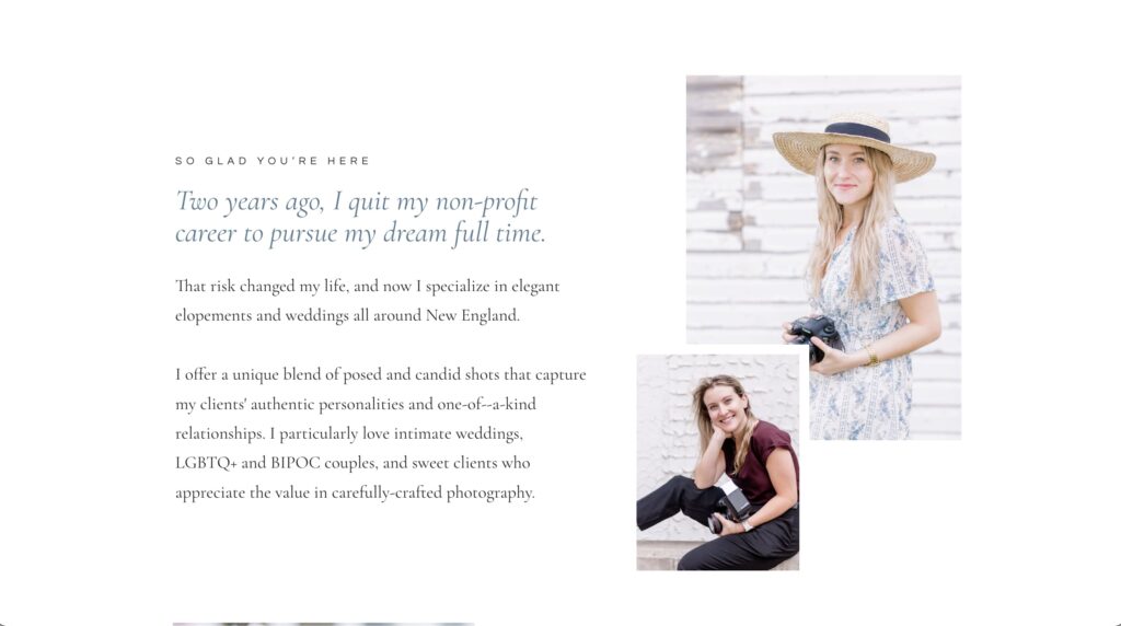 That risk changed my life, and now I specialize in elegant elopements and weddings all around New England.