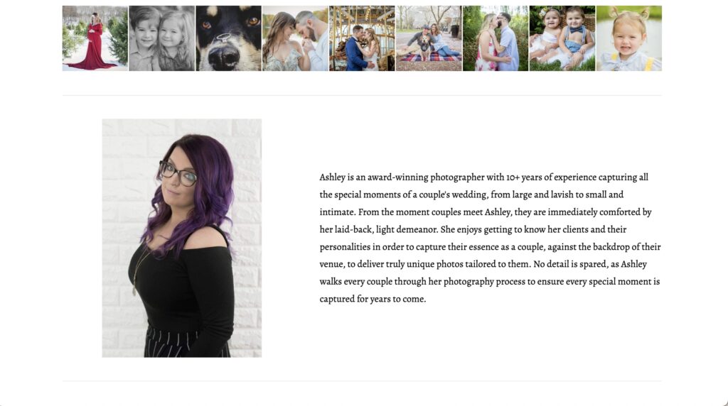 Ashley is an award-winning photographer with 10+ years of experience capturing all the special moments of a couple’s wedding, from large and lavish to small and intimate. From the moment couples meet Ashley, they are immediately comforted by her laid-back, light demeanor.