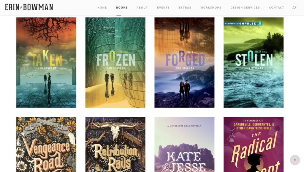 Erin is represented by Sara Crowe of Pippin Properties. She is the author of the Taken Trilogy, Vengeance Road, Retribution Rails, the Edgar Award-nominated Contagion duology, The Girl and the Witch’s Garden, and Dustborn.