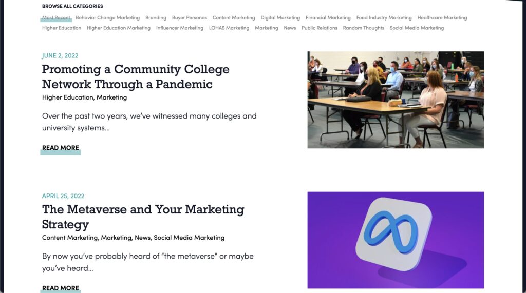 We’re fully integrated with our digital performance agency, VONT. Together, we integrate modern branding with the latest digital marketing and social media strategies, public relations, web development, and research methods to engage our clients’ audiences, move the needle, and accomplish their goals.
