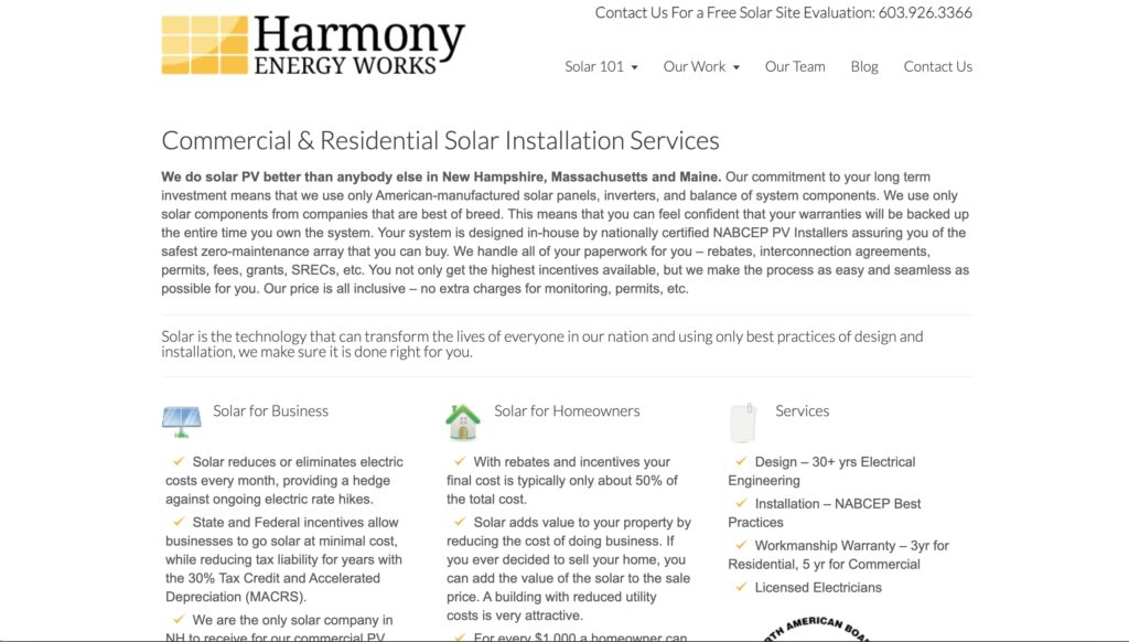 If you’re thinking of getting solar panels installed, first you can learn more about how solar panels work and why you should make the switch. You can have your solar panels mounted on your roof, or on pole or multi-pole mounts. You can check out some of Harmony Energy Works’ past work in their gallery.