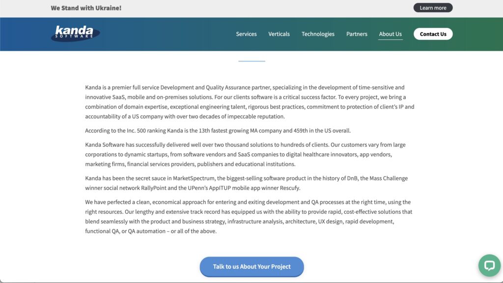 Kanda is a premier full service Development and Quality Assurance partner, specializing in the development of time-sensitive and innovative SaaS, mobile and on-premises solutions. For our clients software is a critical success factor. To every project, we bring a combination of domain expertise, exceptional engineering talent, rigorous best practices, commitment to protection of client’s IP and accountability of a US company with over two decades of impeccable reputation.