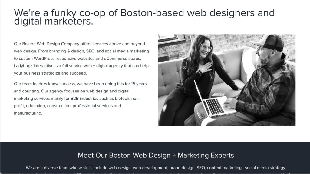 Boston web design and web marketing agency Ladybugz Interactive can design your responsive website and help you grow your business using SEO, Social Media Marketing. Content Marketing and other Web Marketing Strategies.