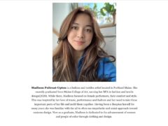 Madison Poitrast-Upton is a fashion and textiles artist located in Portland Maine. She recently graduated from Maine College of Art, earning her BFA in fashion and textile design(2020). While there, Madison focused on female performers, their comfort and style. This was inspired by her love of music, performance and fashion and her need to take these important parts of her life and mold them together. Having been a thespian herself for many years she was familiar with the all to often un-empathetic and sexist approach toward costume design. Now as a graduate, Madison is dedicated to the advancement of women and people of color through clothing and design.