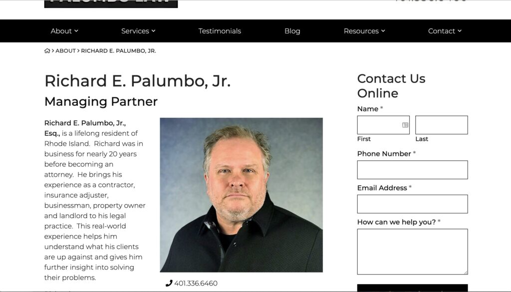 Our law firm treats our clients’ legal needs sensitively and seriously. Palumbo Law located in Cranston, Rhode Island pays special attention to the details that build a strong attorney – client relationship. Our law firm has vast experience in Real Estate Law, Condominium Law, Business Law, Fire Loss and Water Damage Adjusting and Litigation, Property Loss Adjusting, Appraisal, Settlement and Litigation, Probate Law and Litigation. Our law firm respects you and will seek sensible, practical solutions to your problems. We provide legal services to the state of Rhode Island including Cranston, Rhode Island, Providence, Rhode Island, Warwick, Rhode Island, West Warwick, Rhode Island, East Providence, Rhode Island, Pawtucket, Rhode Island, Lincoln, Rhode Island, Smithfield, Rhode Island, North Smithfield, Rhode Island, Cumberland, Rhode Island, East Greenwich, Rhode Island, West Greenwich, Rhode Island, North Kingstown, Rhode Island, South Kingstown, Rhode Island, and all of the Cities and Towns within Providence County, Kent County, Washington County and Bristol County. Our law firm also provides legal services to the state of Massachusetts including Bristol County, Massachusetts, Hampden County, Massachusetts, Hampshire County, Massachusetts, Suffolk County, Massachusetts and Worcester County, Massachusetts and Connecticut.