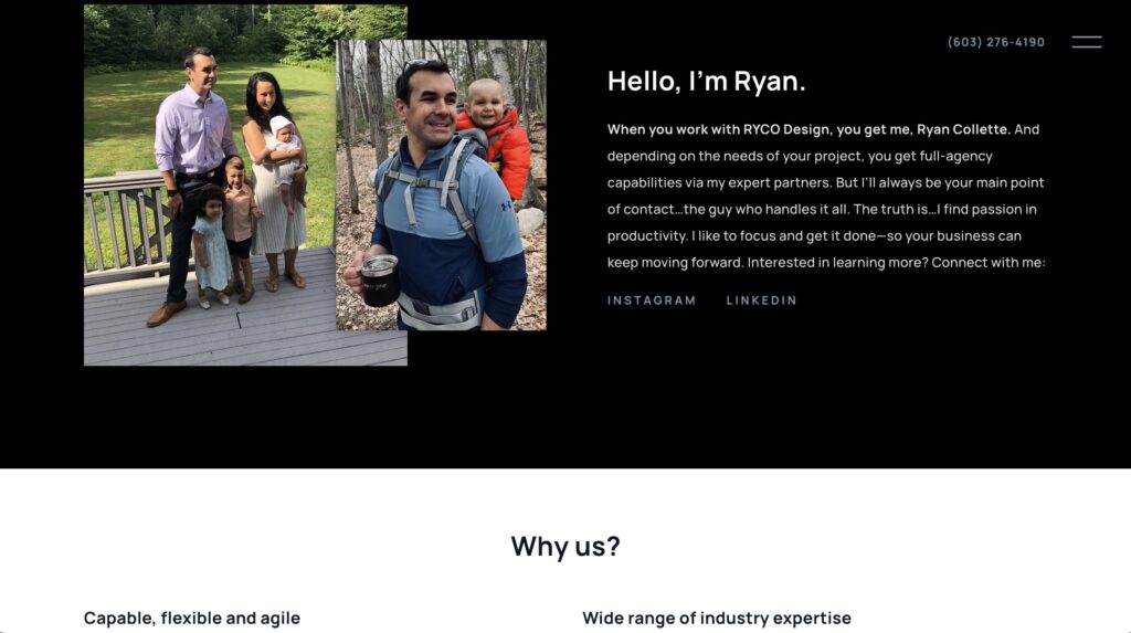 RYCO Design (pronounced rī-co) is a New Hampshire-based website development, graphic design and digital marketing studio serving the New England area. We provide dynamic creative and marketing solutions for any industry, from large-scale companies to small start-ups, non-profits and entrepreneurs.