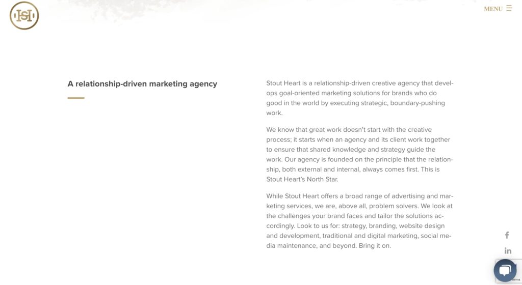 Stout Heart is a relationship-driven creative agency that develops goal-oriented marketing solutions for brands who do good in the world by executing strategic, boundary-pushing work.