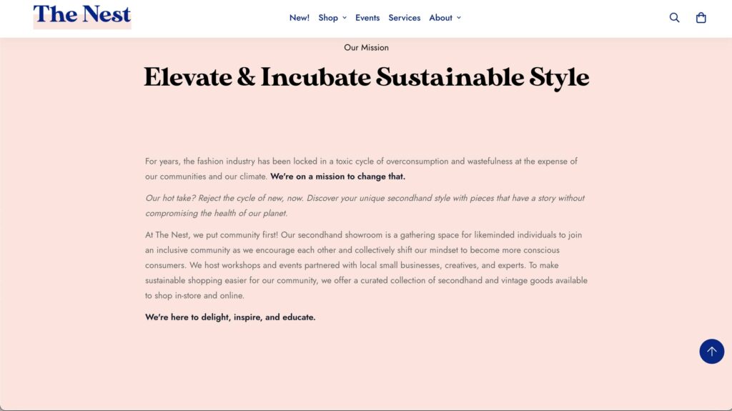 At The Nest, we put community first! Our secondhand showroom is a gathering space for likeminded individuals to join an inclusive community as we encourage each other and collectively shift our mindset to become more conscious consumers. We host workshops and events partnered with local small businesses, creatives, and experts. To make sustainable shopping easier for our community, we offer a curated collection of secondhand and vintage goods available to shop in-store and online.