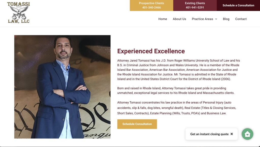 Born and raised in Rhode Island, Attorney Tomassi takes great pride in providing unmatched, exceptional legal services to his Rhode Island and Massachusetts clients.